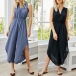 Sexy Deep V-neck Sleeveless Solid Color Backless Slim Fit Jumpsuit