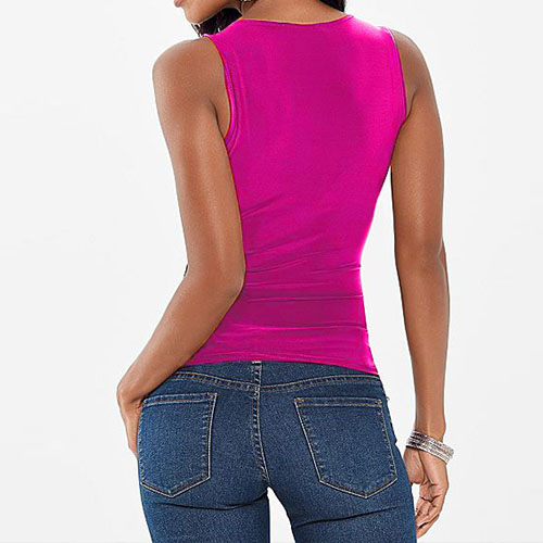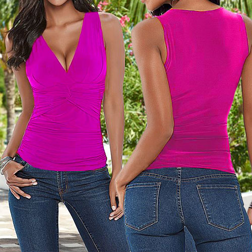 Solid color style,with sleeveless and a deep v-neckline,this tops can give you a sexy yet cozy style.