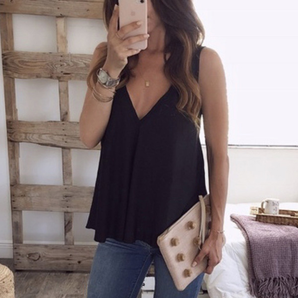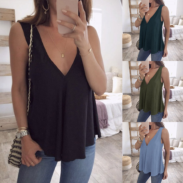 This top is designed with a solid color,simple yet stylish,while the deep v-neck design will lend you a dash