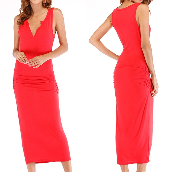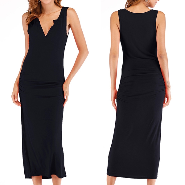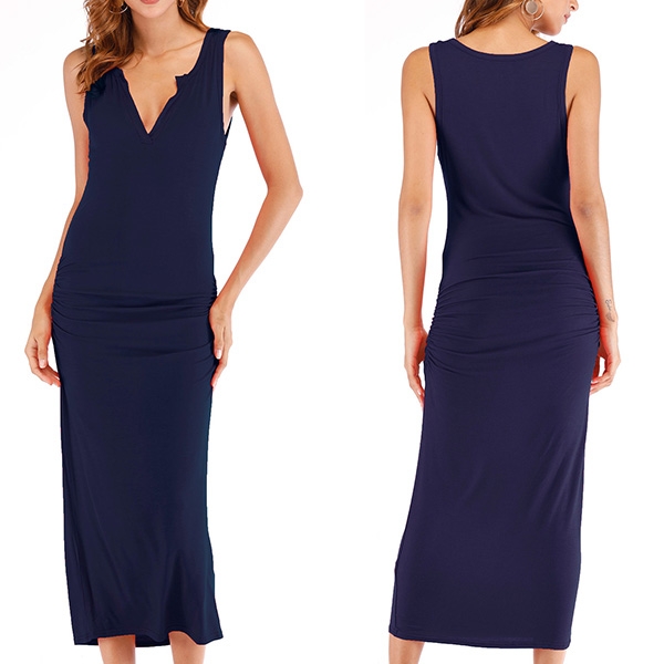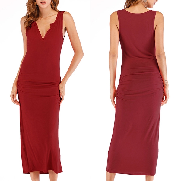 It is crafted in a solid color,simple,generous yet elegant,while the deep v-neck design can showcase your