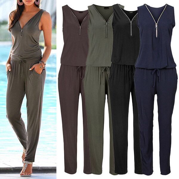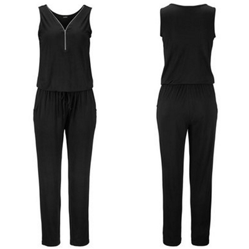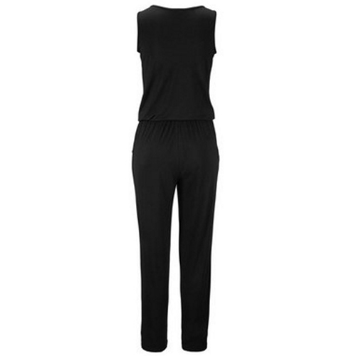 Sexy Deep V-neck Sleeveless Solid Color Slim Fit Jumpsuit