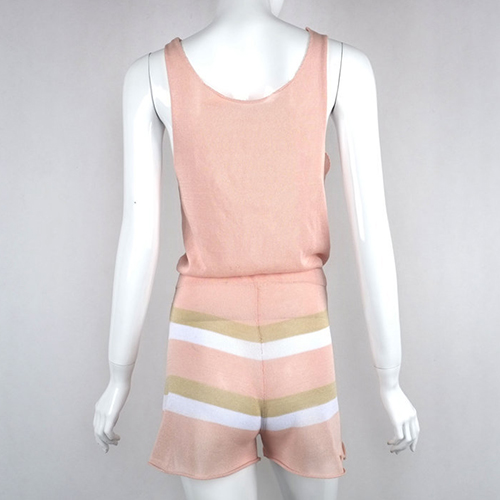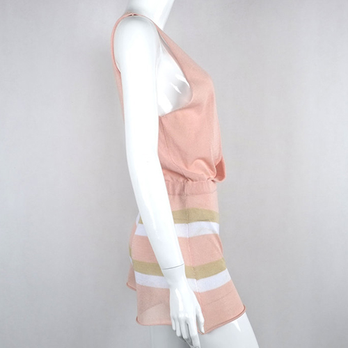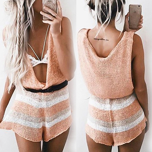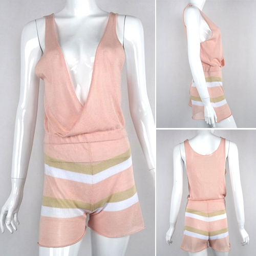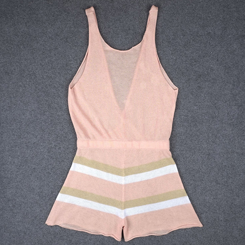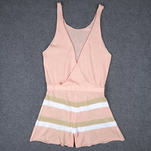 featuring deep v-neck, sleeveless and striped design, this romper perfect exposes your