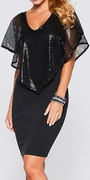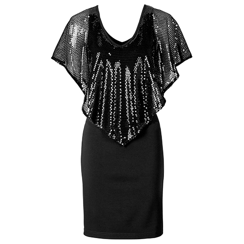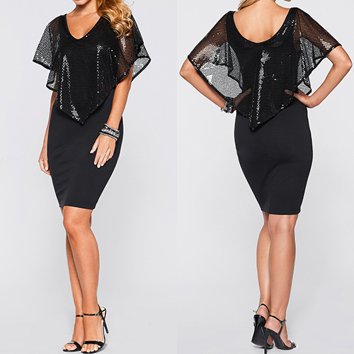 Cape-style design,with a fit silhouette and a deep v-neckline,sexy and delicate. This is a dress which