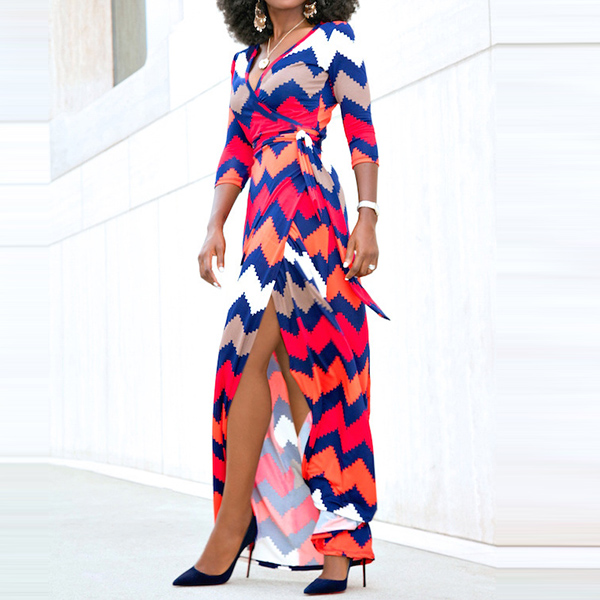 makes it easier for you to stand out in the crowd. Styled with 3/4 sleeve,deep v-neck,slit hem and a maxi length,