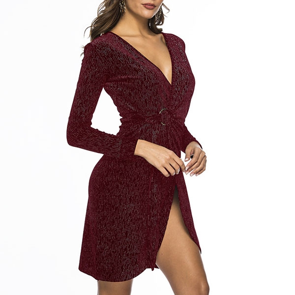 v-neck and slit hem design will offer you a sexier look,while the fit silhouette and lace-up design at