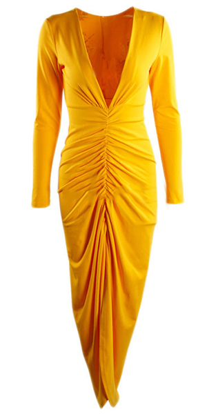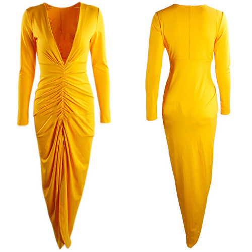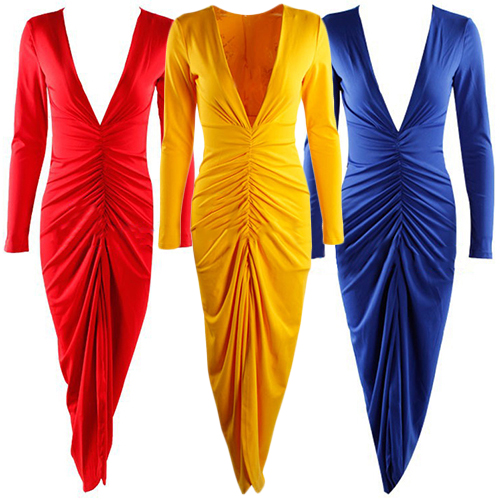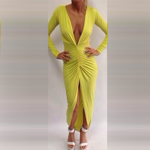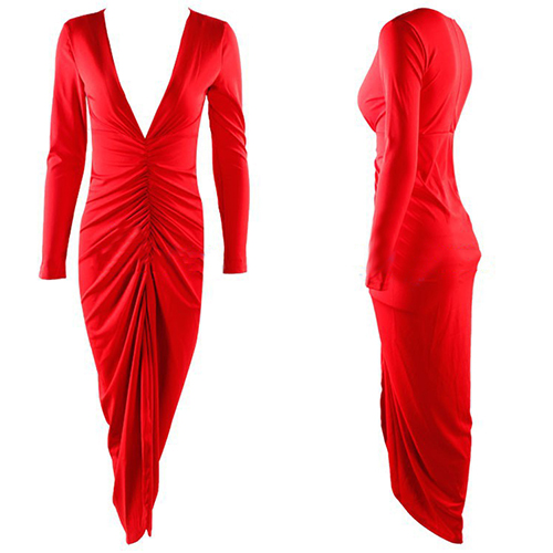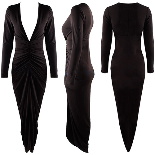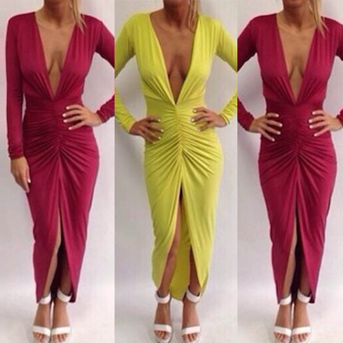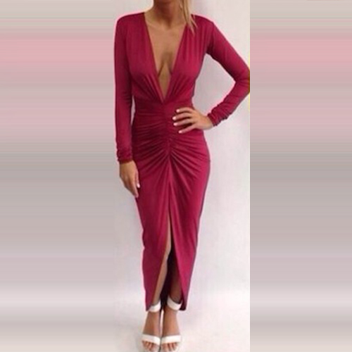 designed with long sleeve,deep v-neckline and an irregular slit hem,this dress is perfect for parties and gatherings.