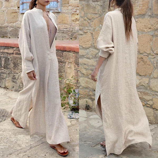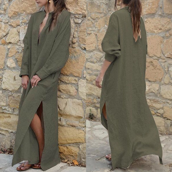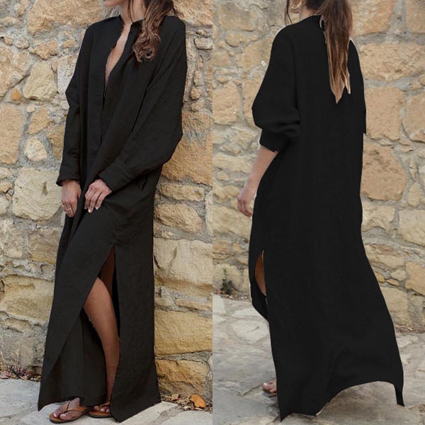 a solid color,the deep v-neck,slit hem and maxi length design make this piece look so sexy and