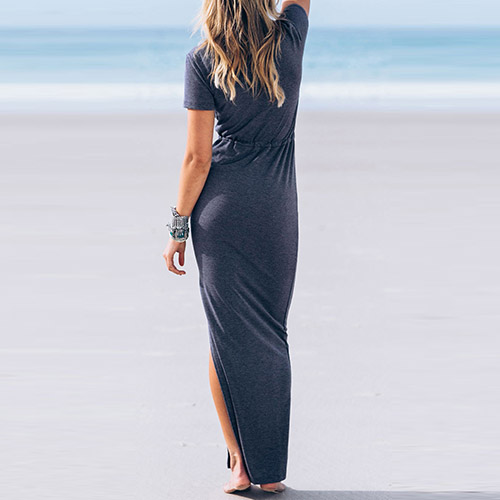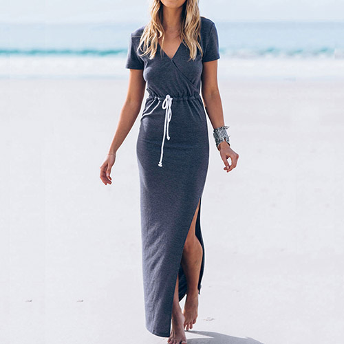 Strolling on the beach with this maxi dress,so relaxed and cozy! Solid color style,Its deep v-neck and