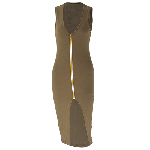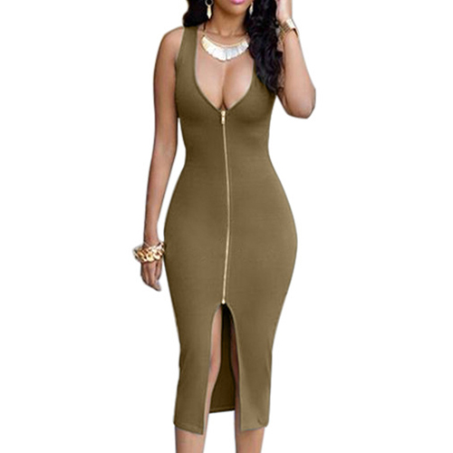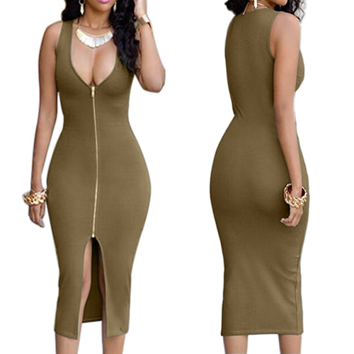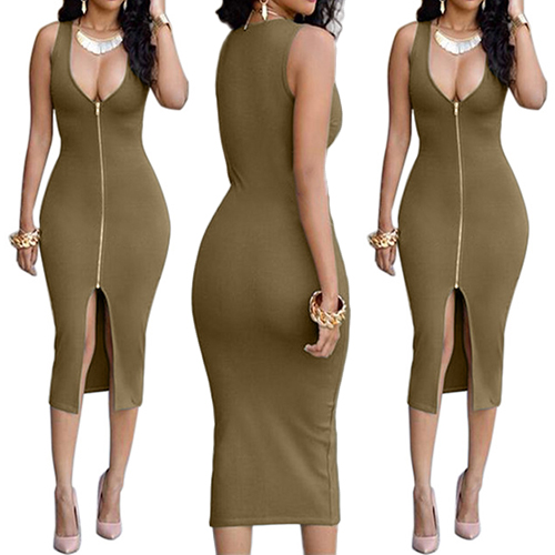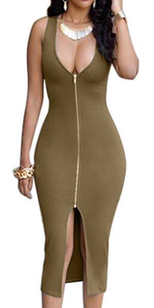 and your sultry style. Its deep v-neck,slit hem and front zipper design makes it look so sexy and