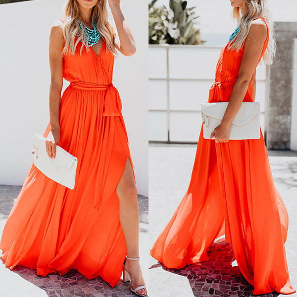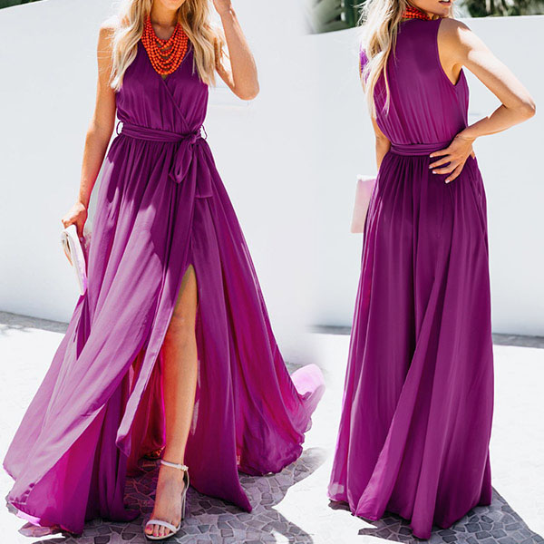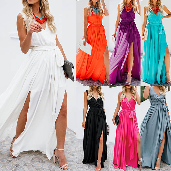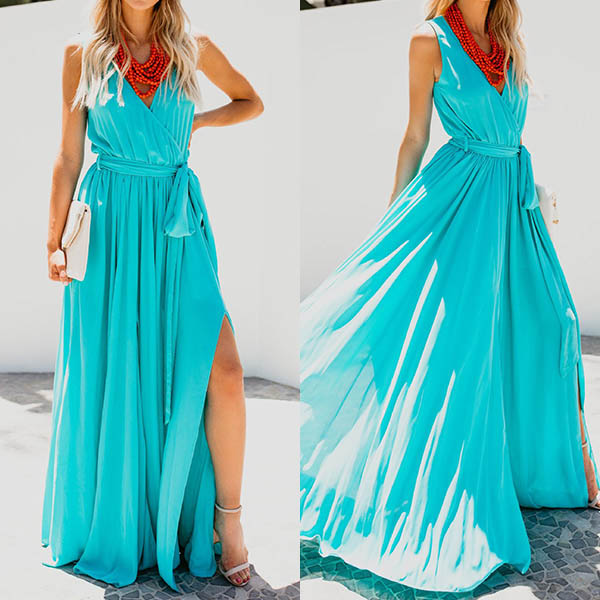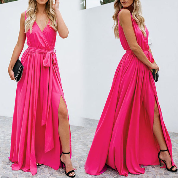deep v-neck,slit hem design,this dress can portray your elegant image as well as