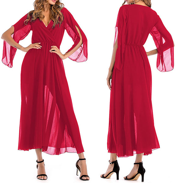 Solid color style,the deep v-neck and slit long sleeve design make this piece look so attractive and