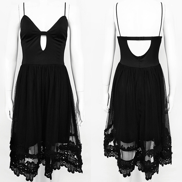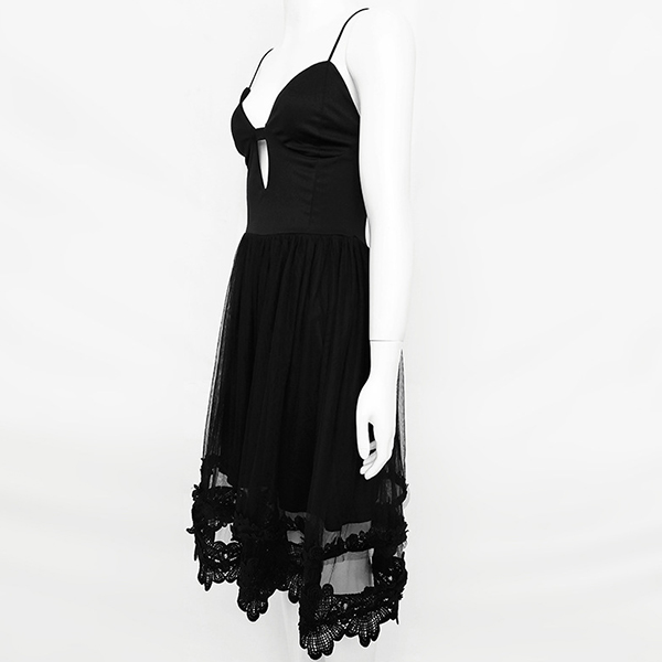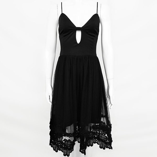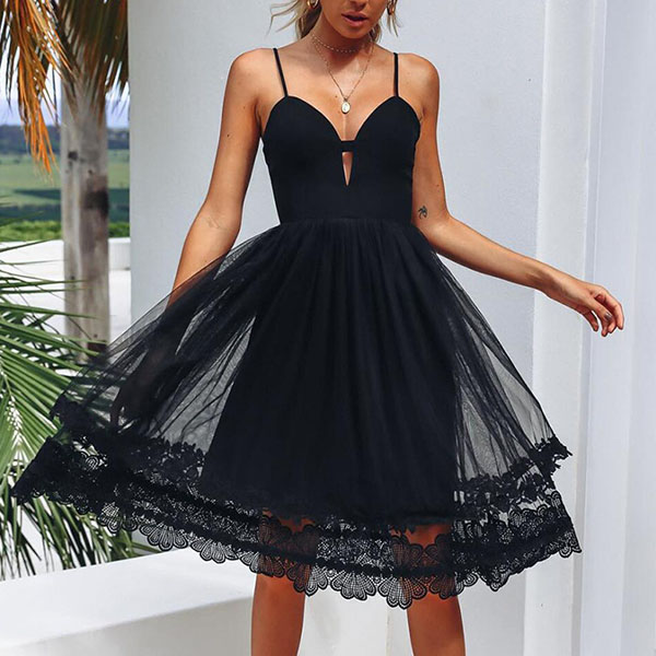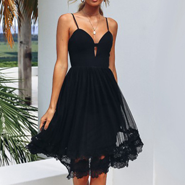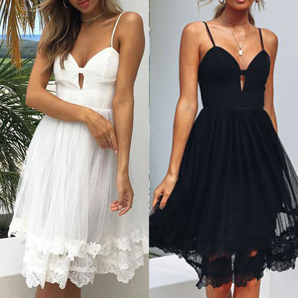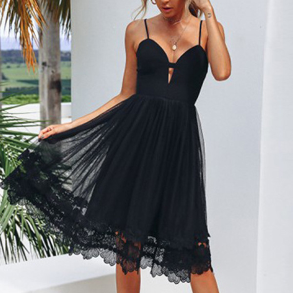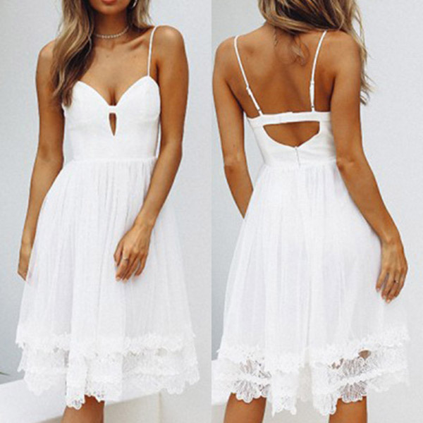 Sexy Deep V-neck Solid Color Backless Sleeveless Hollow Out Embroidered Dress