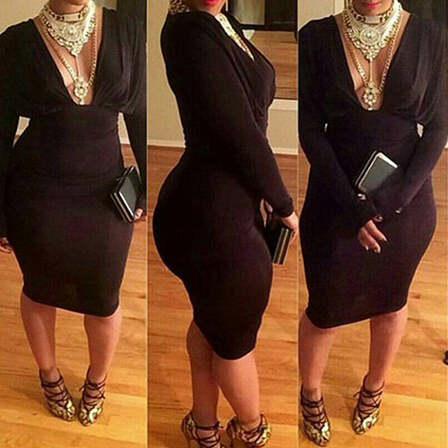 long sleeve,deep v-neck and a body-flattering silhouette,sexy and charming. Paired with your