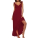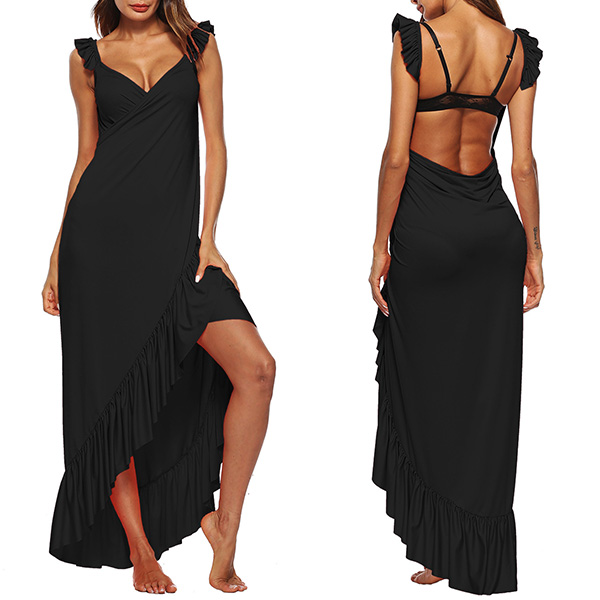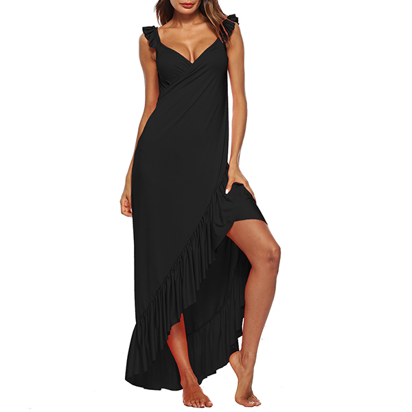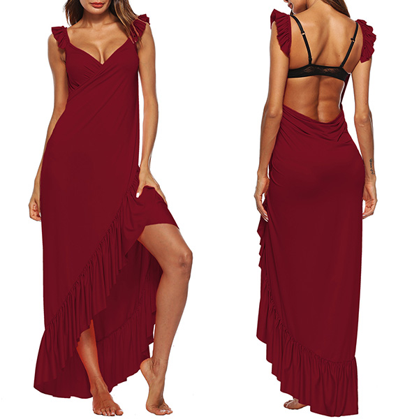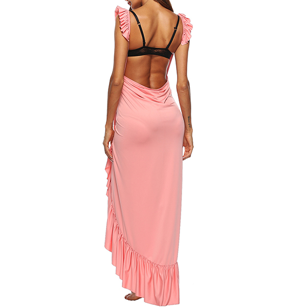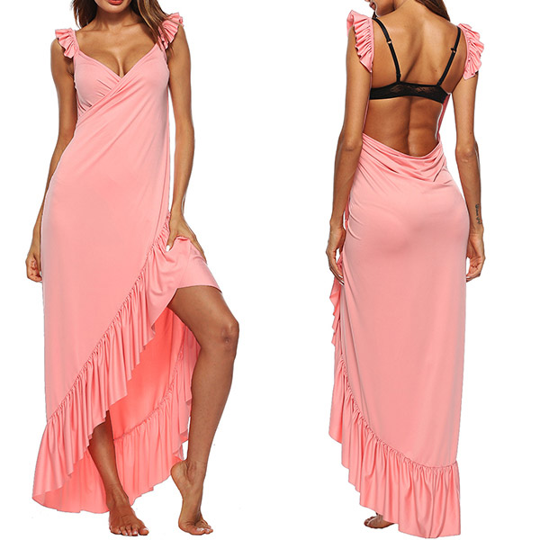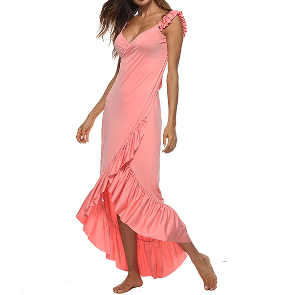 Sexy Deep V-neck Solid Color Sleeveless Slim Fit High-low Hemline Dress