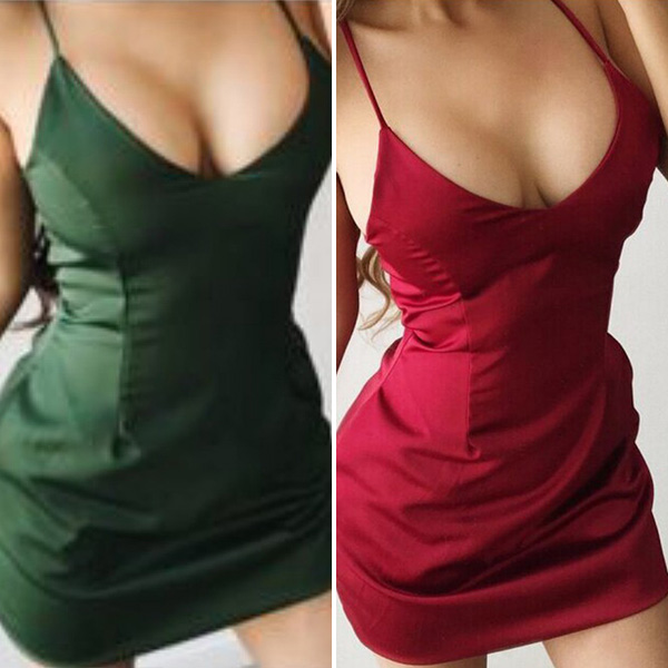Sexy Deep V-neck Solid Color Sleeveless Slim Fit Over-hip Dress