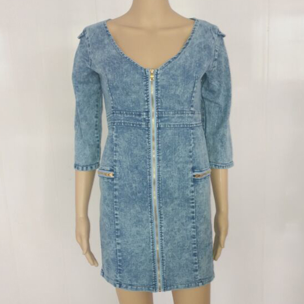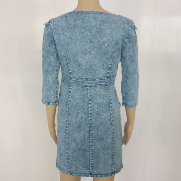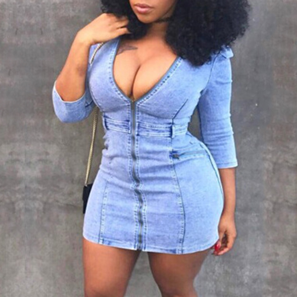 You are so charming with this denim dress.Low-cut front and solid color, stylish and sexy.Slim fit design,which can highlight