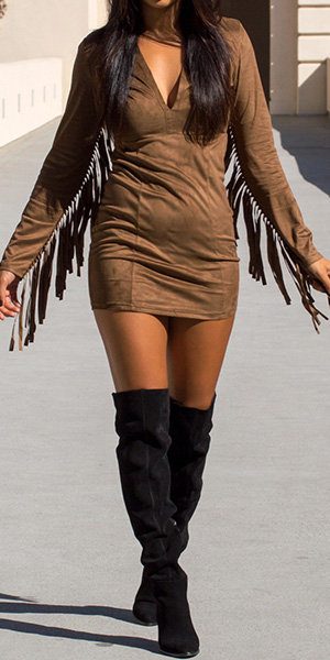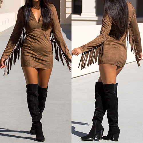 Wanna a chic and sexy style? Then slip into this sheath dress! Its sleeve with tassel design