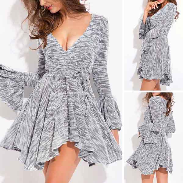The deep v-neck,trumpet sleeve and irregular hem design can give you a sexy and charming look,