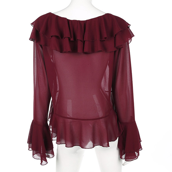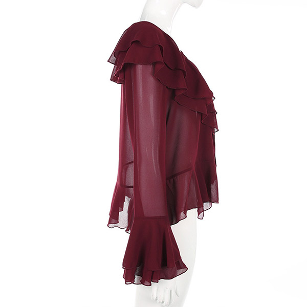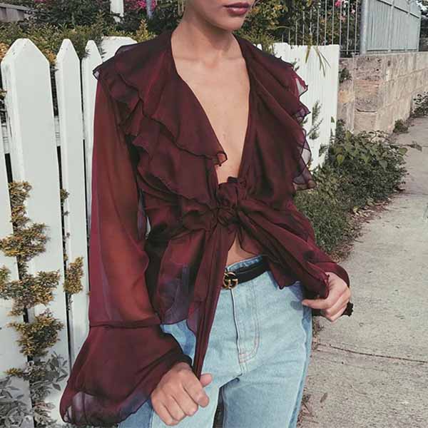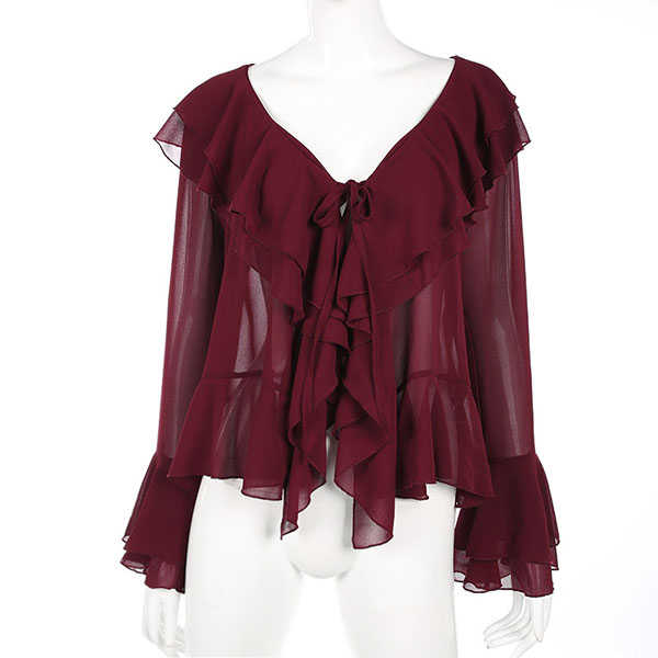 designed with deep v-neck,trumpet sleeve and ruffle details,sexy and alluring. We suggest you