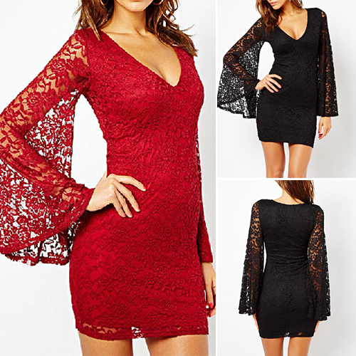 dress is designed with deep v-neckline,trumpet sleeve and a fit silhouette,which can perfect highlight your seductive curve and sultry style.