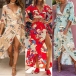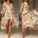 with deep v-neck,trumpet sleeve and irregular slit hem design,this dress knows how to exude your