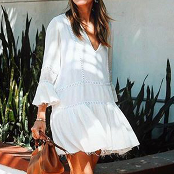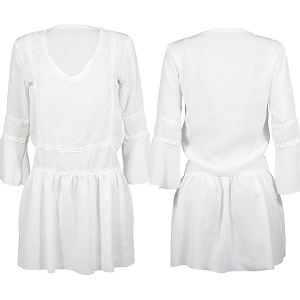 Solid color style,its deep v-neck and trumpet sleeve design adds some sexy and feminine flavor,while its soft,