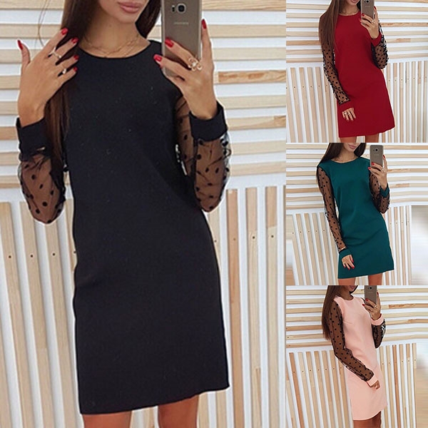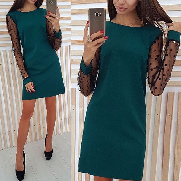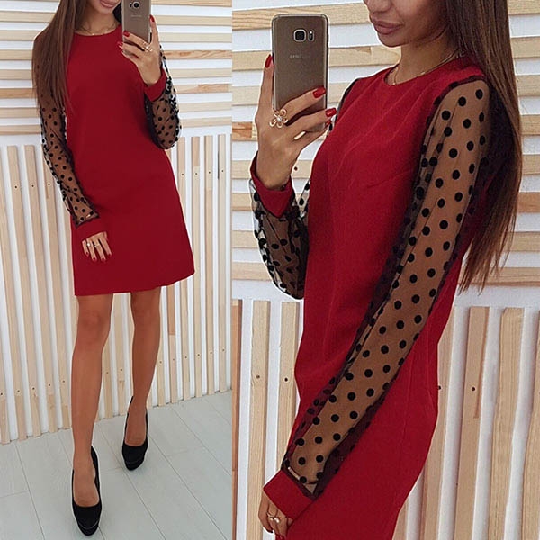The dots gauze spliced long sleeve design is the highlight,which makes this piece look so sexy and attractive.