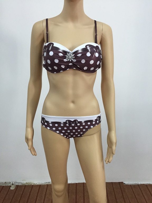 Jet set to your next beach getaway with this bikini set packed in your suitcase. Dots printed style,