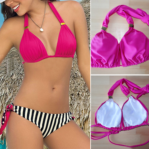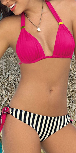 Sexy striped printed and dots knotted design, fashion and sultry. Its halter design makes your