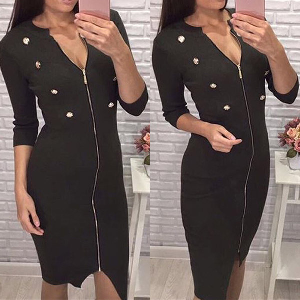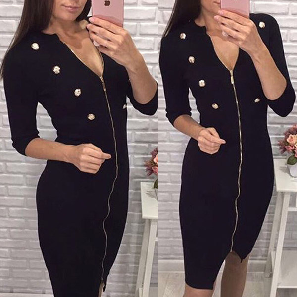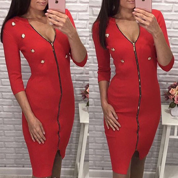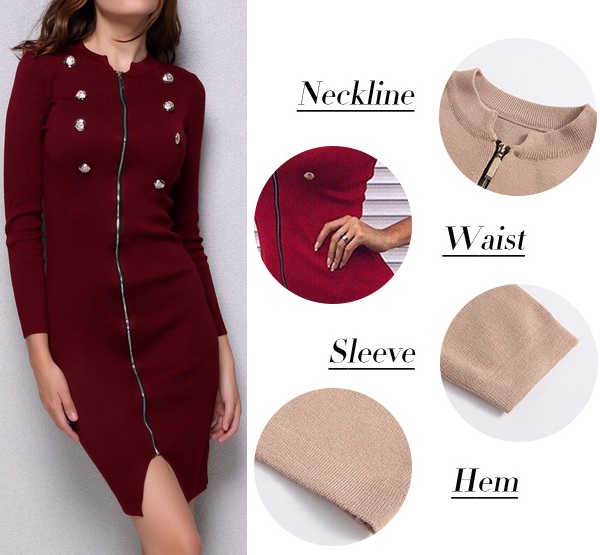 This dress is good to improve your female temperament. Solid color style, with long sleeve and slim fit design, which can decorate your good figure and give you a fresh