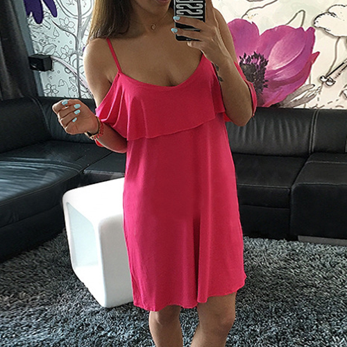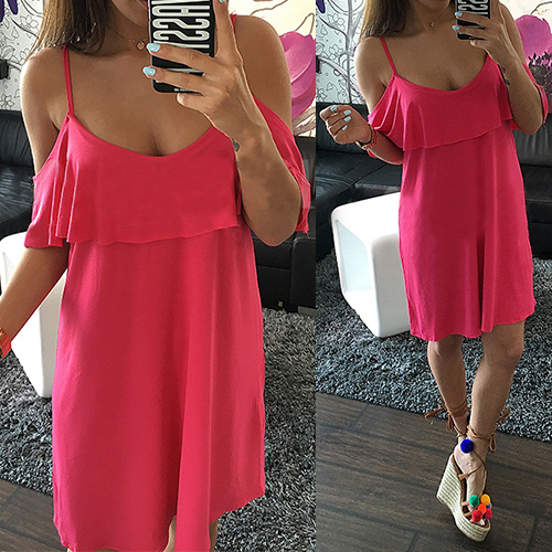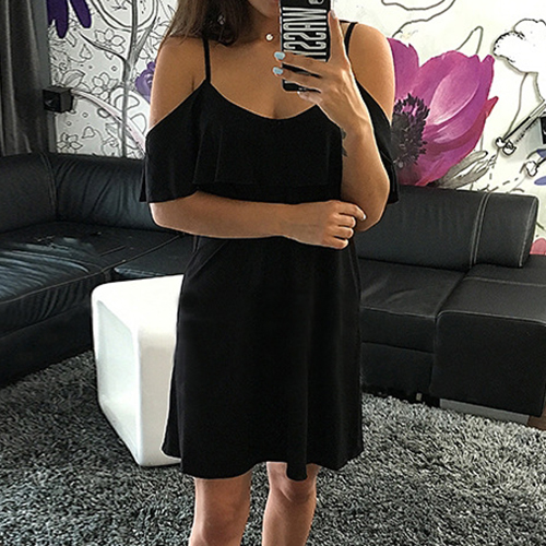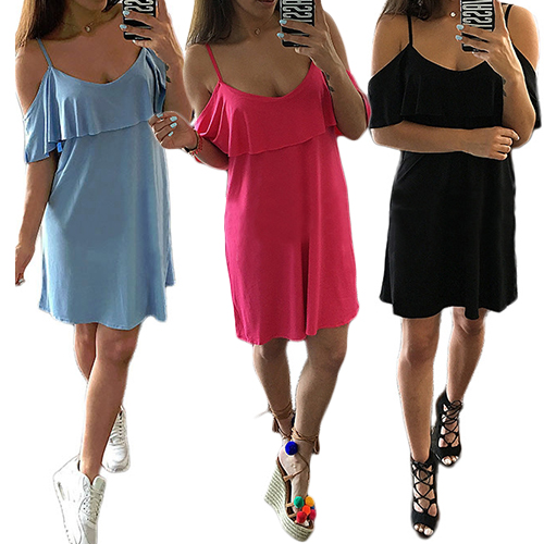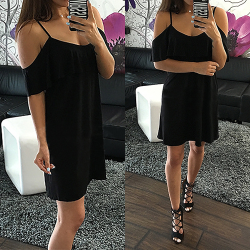 Sling style,its off-shoulder and flouncing design makes this piece look more feminine.