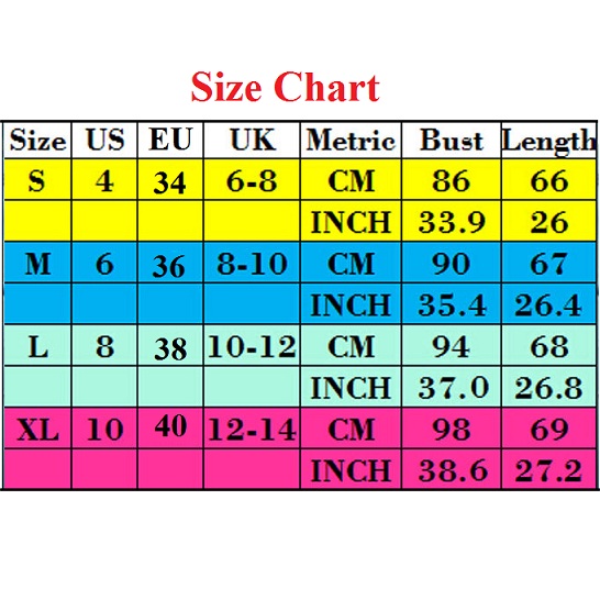 XL : Bust : 98cm(38.58"); Length : 69cm(27.17");