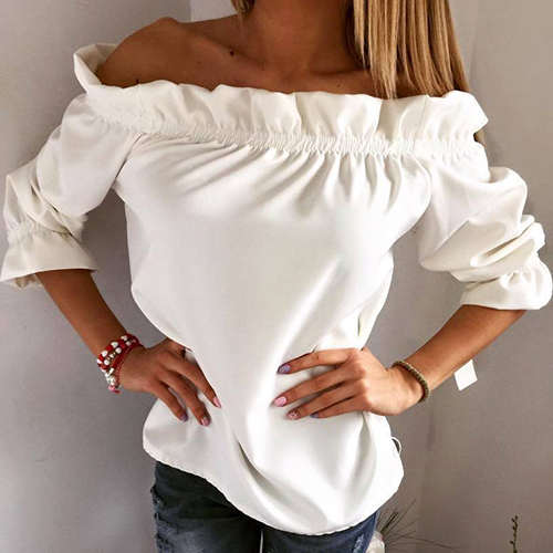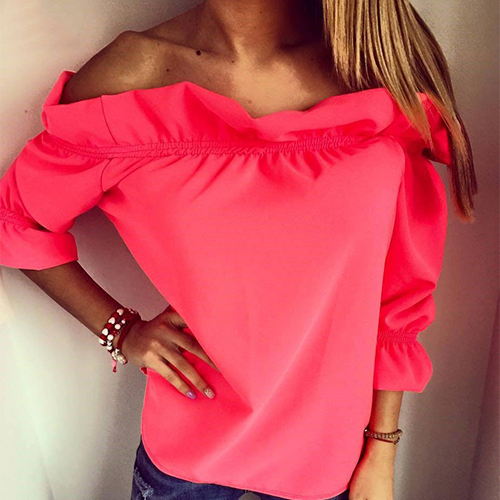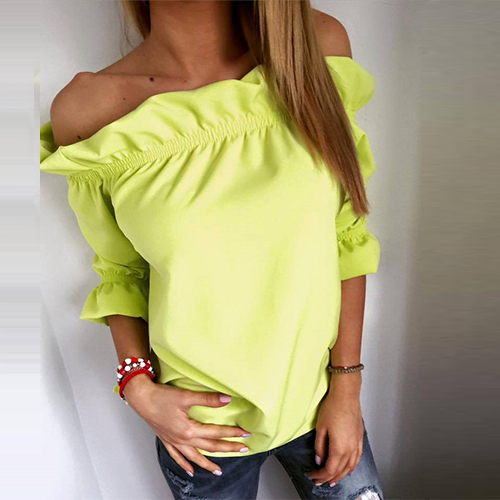 At your firts sight,you would be attracted by this tops. It features solid color style,its slash neck