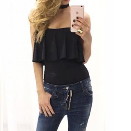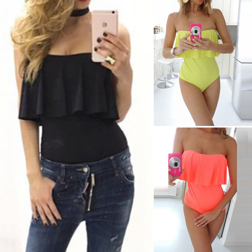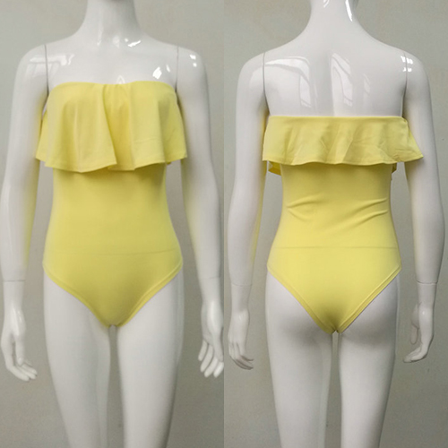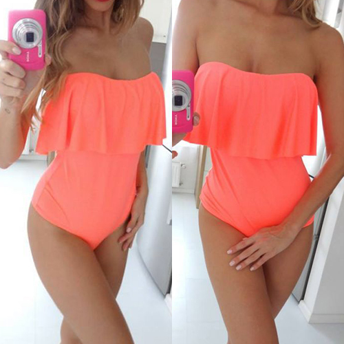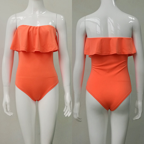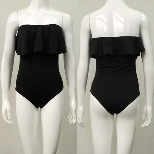 Strapless style,with a solid color and a sweet flouncing design,sexy and charming.