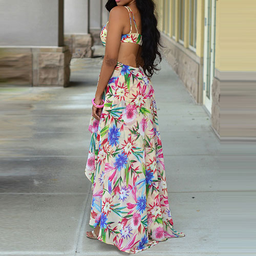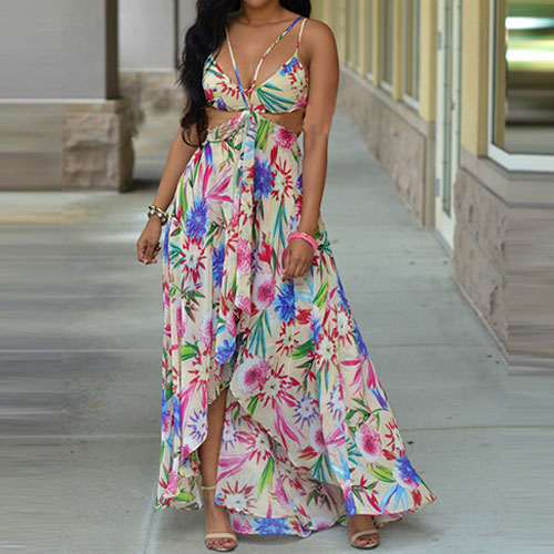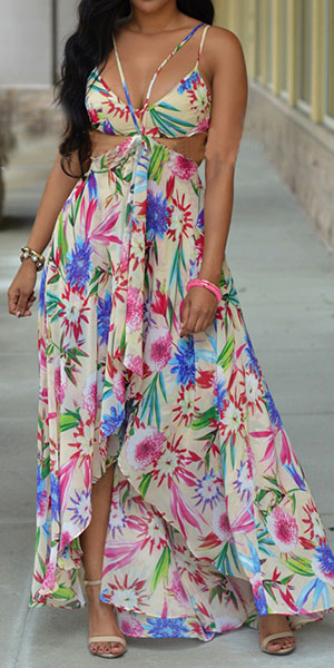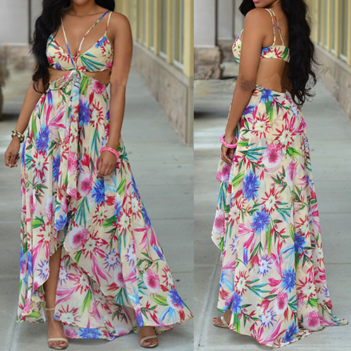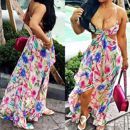 Sexy flowers printed maxi dress always makes girls fall in love. With backless and sleeveless design,