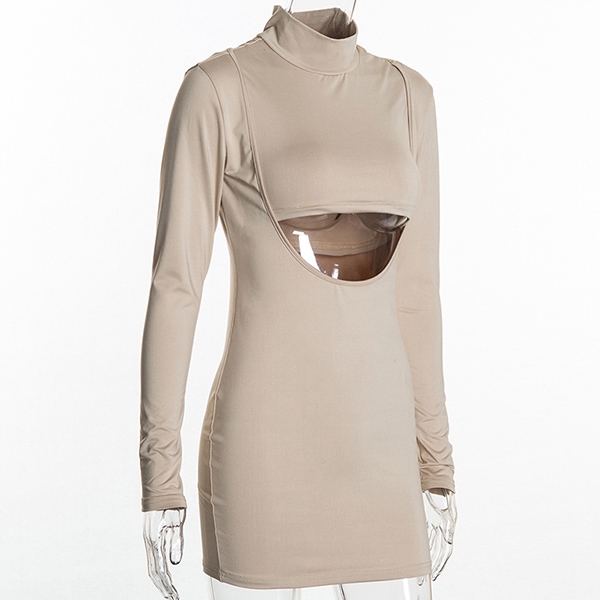 Finished with long sleeve,mock neck and front hollow out design,this dress can give you an alluring look,