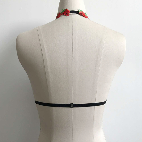 Have you ever seen such a chic and sexy bra? Its halter strap with fruit embroidery spliced design makes it look so