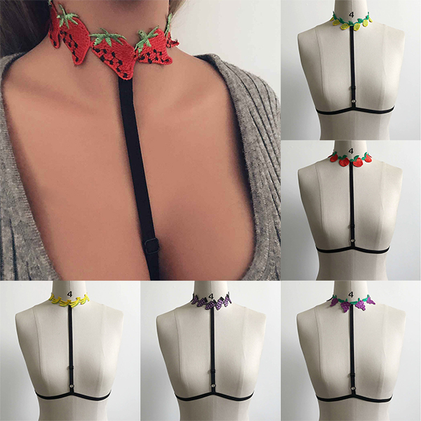 Sexy Fruit Embroidery Spliced Adjustable Halter Bra