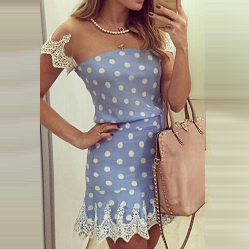 Features dots printed pattern,its gauze and lace spliced design makes it look more feminine. What's