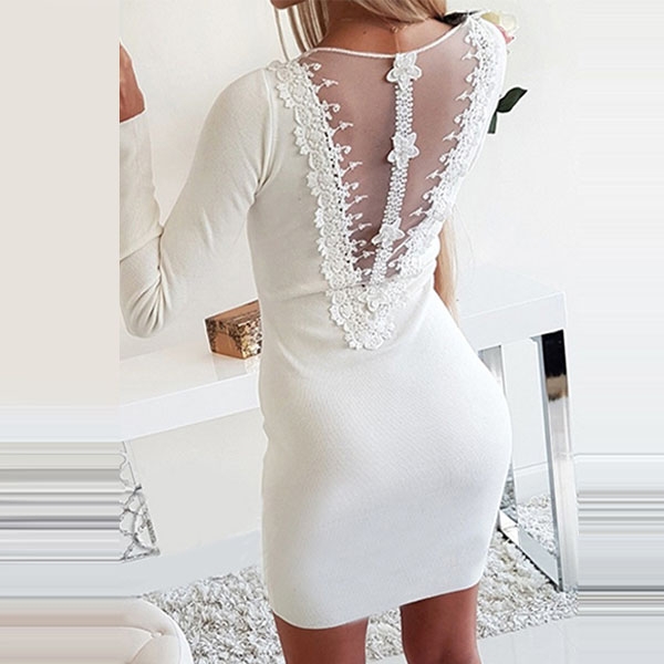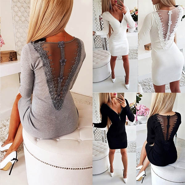 The perfect epitome of demure femininity,this dress can easily help you catch more eyes. The zipper v-neck and gauze spliced backless