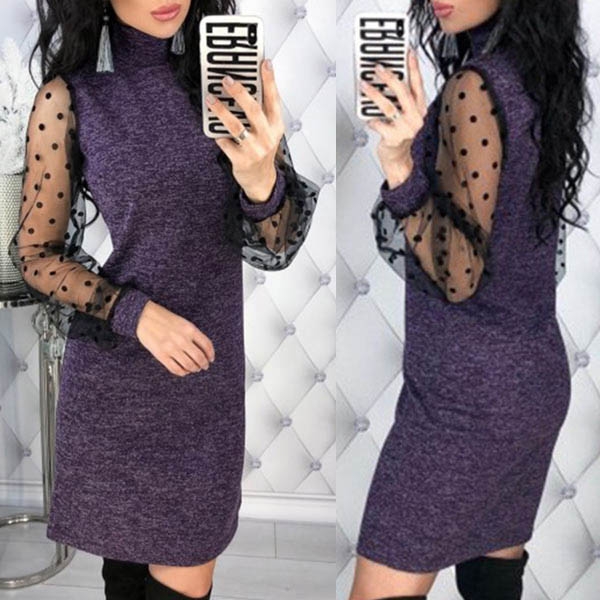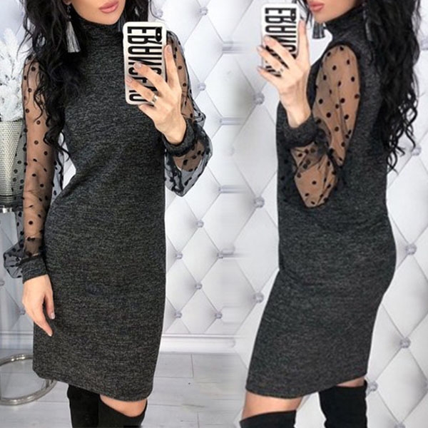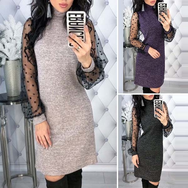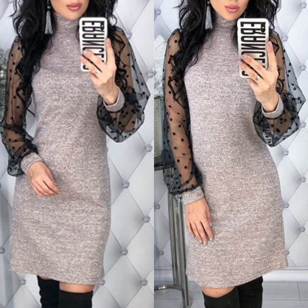 Let your style shine with the help of this dress. The gauze spliced lantern sleeve design is the highlight,
