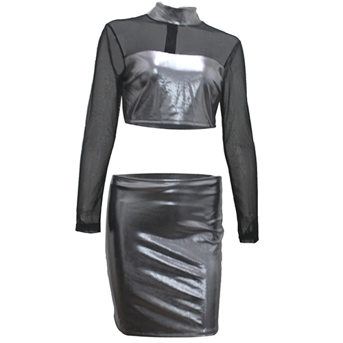 Seductive appeal comes easily once you slip into this two-piece set. Including a long sleeve mock neck crop top and
