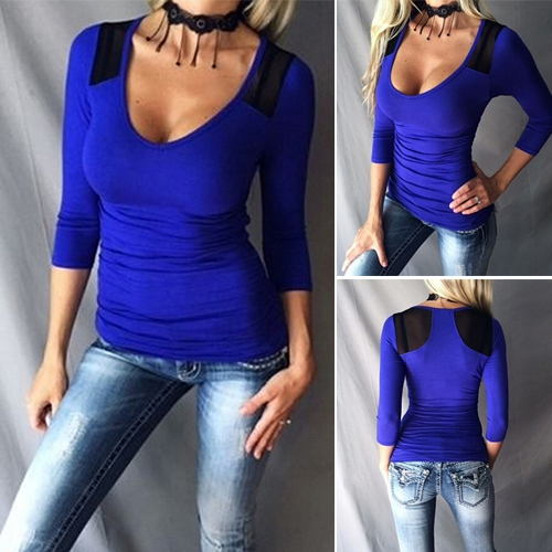 Show off your graceful and charming figure via this bodycon tops. Stylish gauze spliced