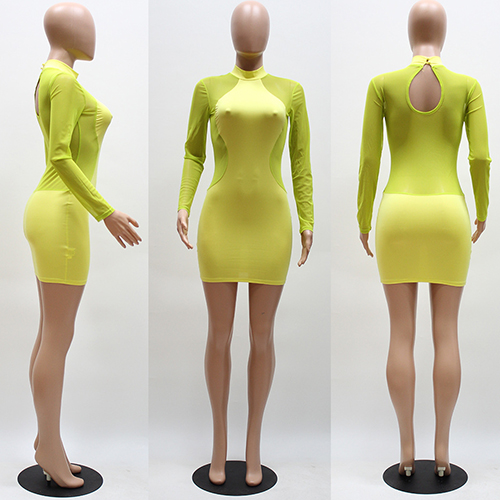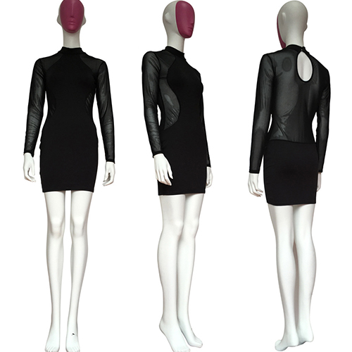 this dress is designed with gauze spliced, round neck, long sleeve and back keyhole design, which