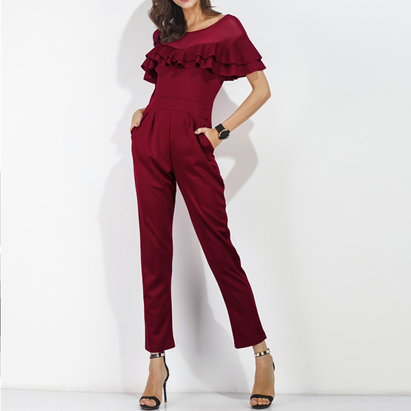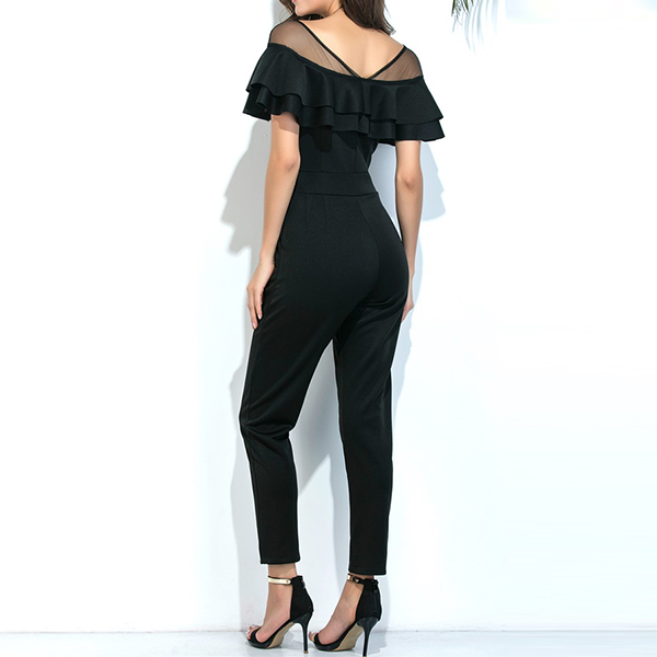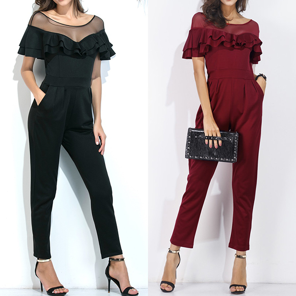 Wanna be a fashionista? Then let this jumpsuit help you. Its see-through gauze spliced and ruffle design can perfect