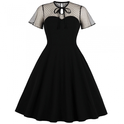 Sexy Gauze Spliced Short Sleeve POLO Collar A-line Dress