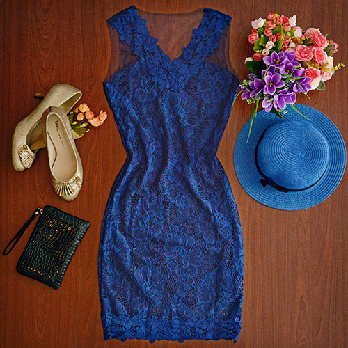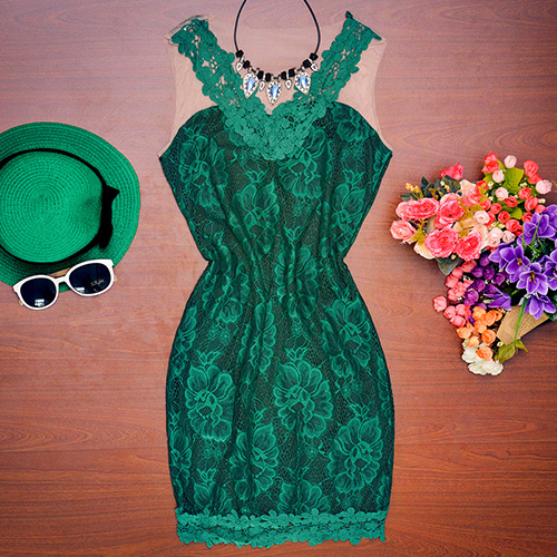 such as sleeveless,see-through gauze spliced and a fit silhouette make this dress so feminine