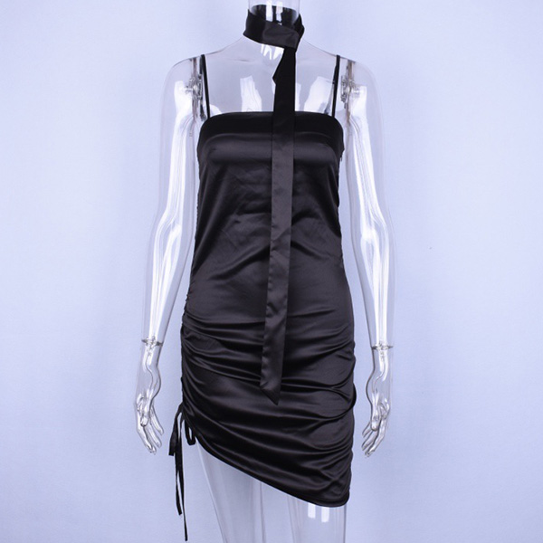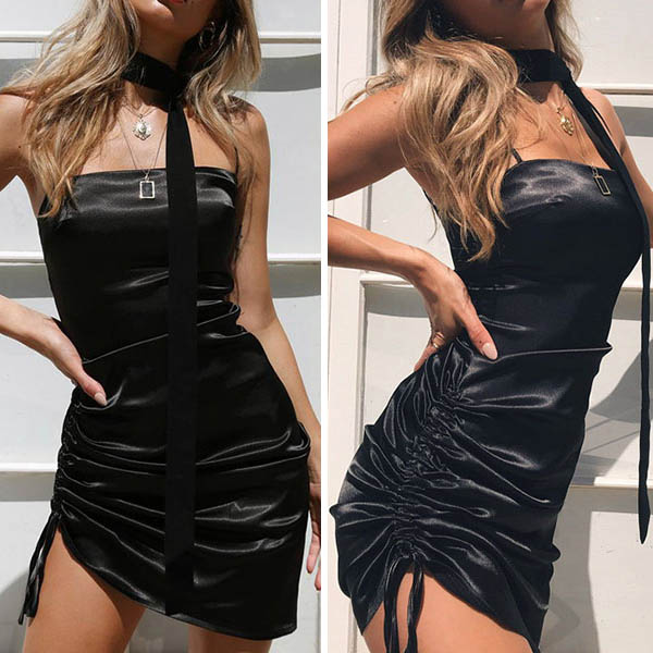 will give you a good wearing eaperience.Solid color style, with sleeveless, a tie design and drape detail