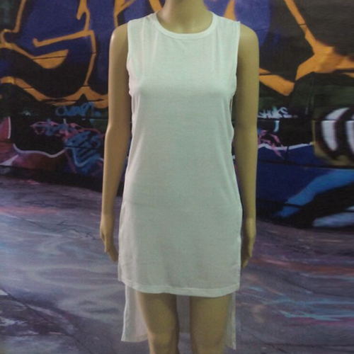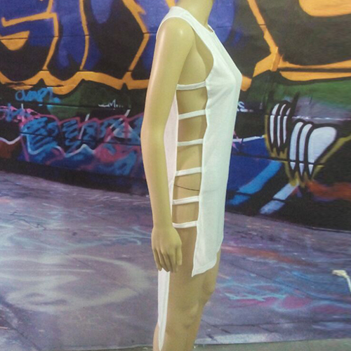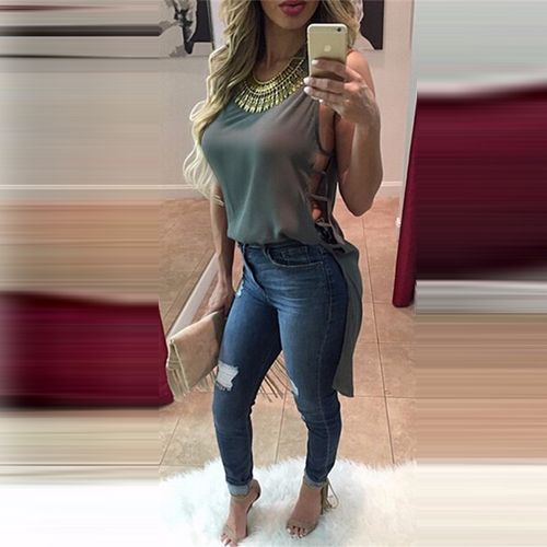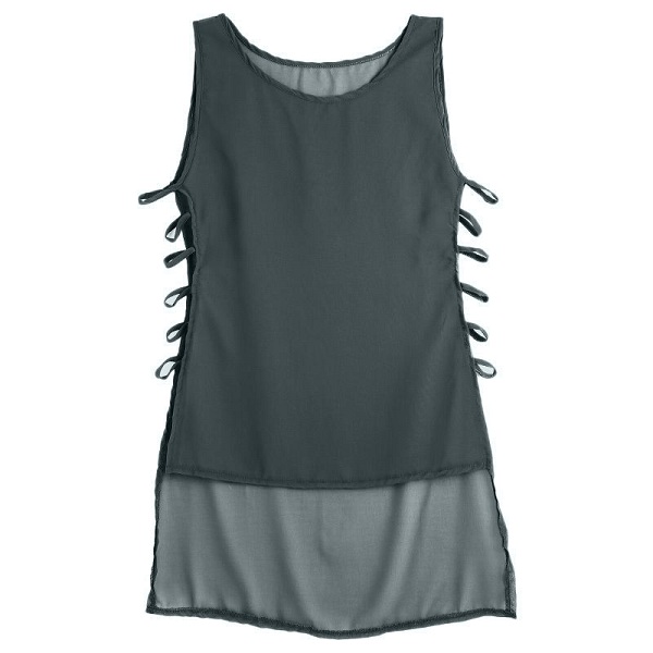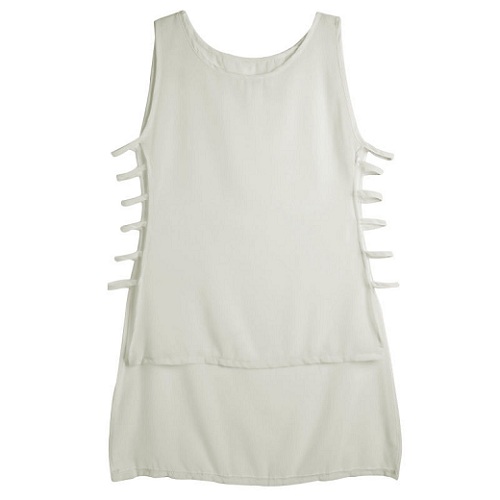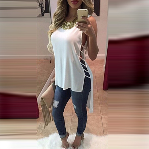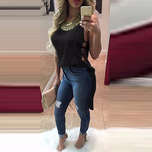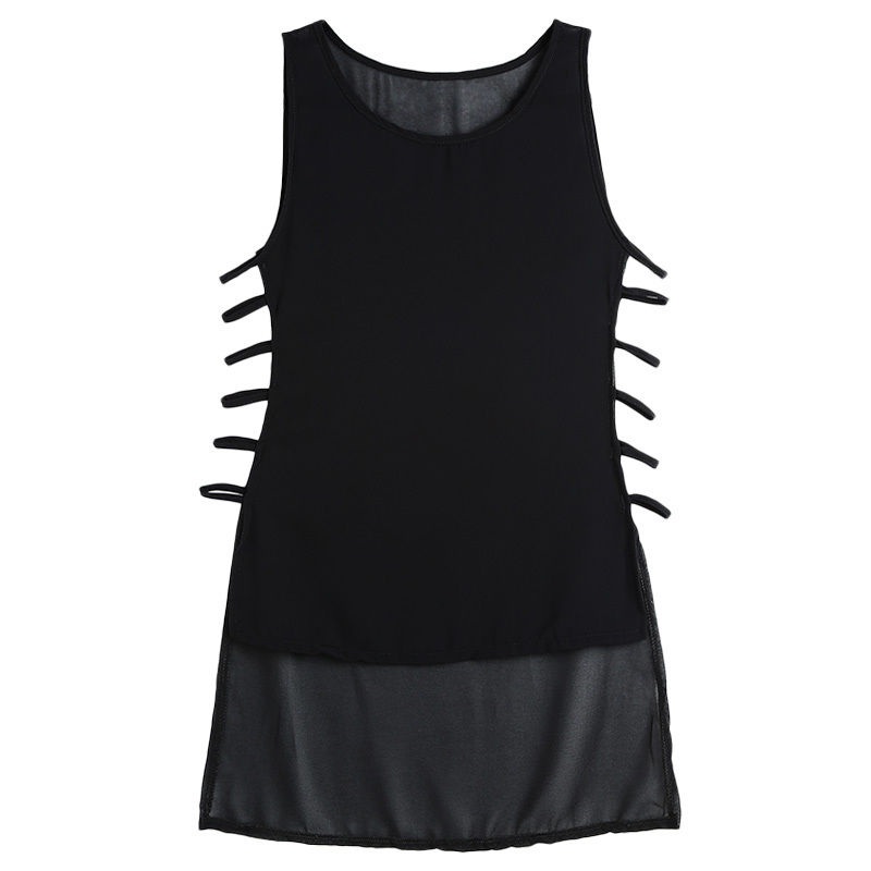 Sexy High-low Hem Side Hollow Out Sleeveless Round Neck Top