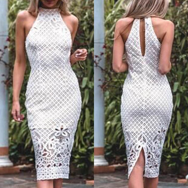 Enjoy the effortlessly beautiful look of this sleeveless lace dress! Rendered in a body-con silhouette with